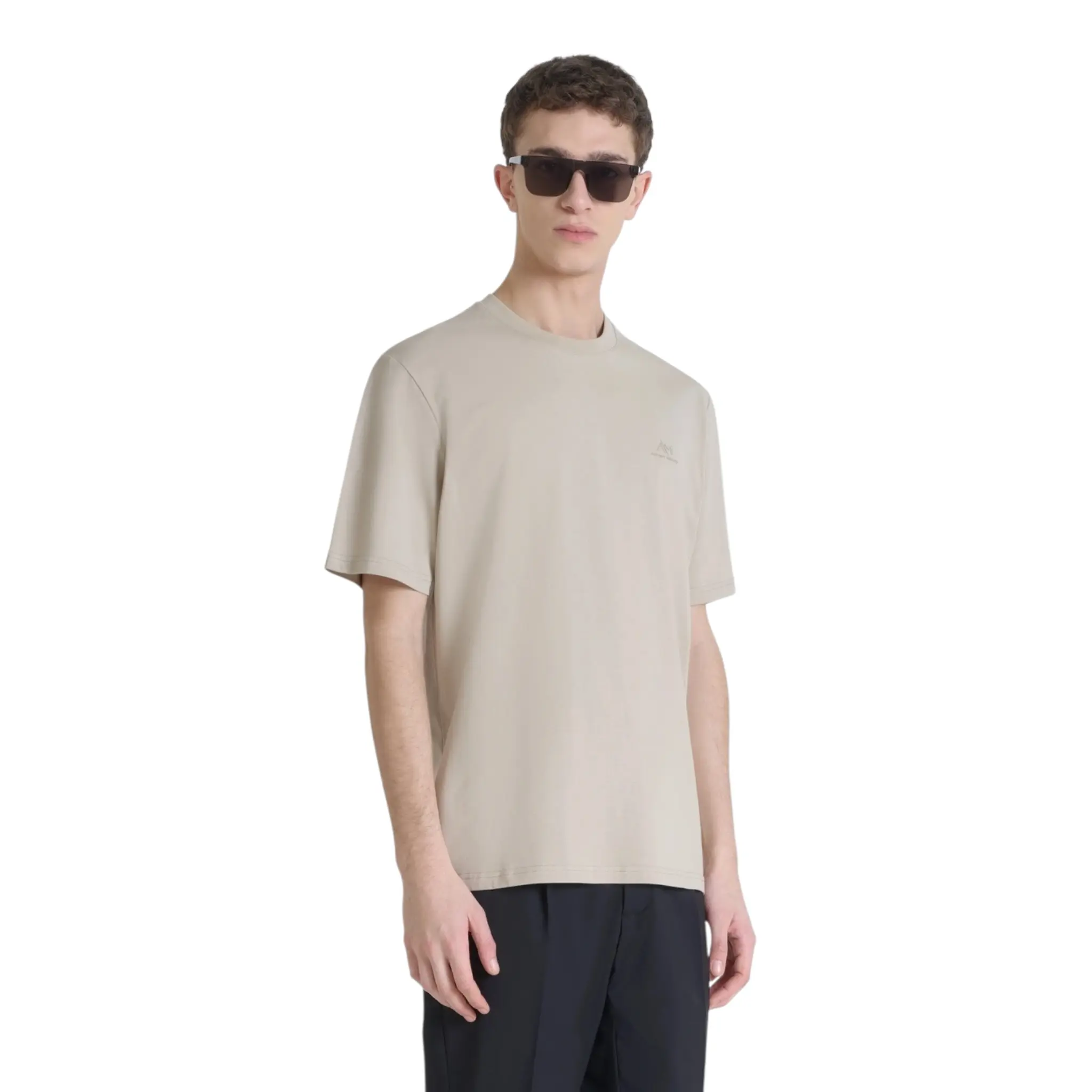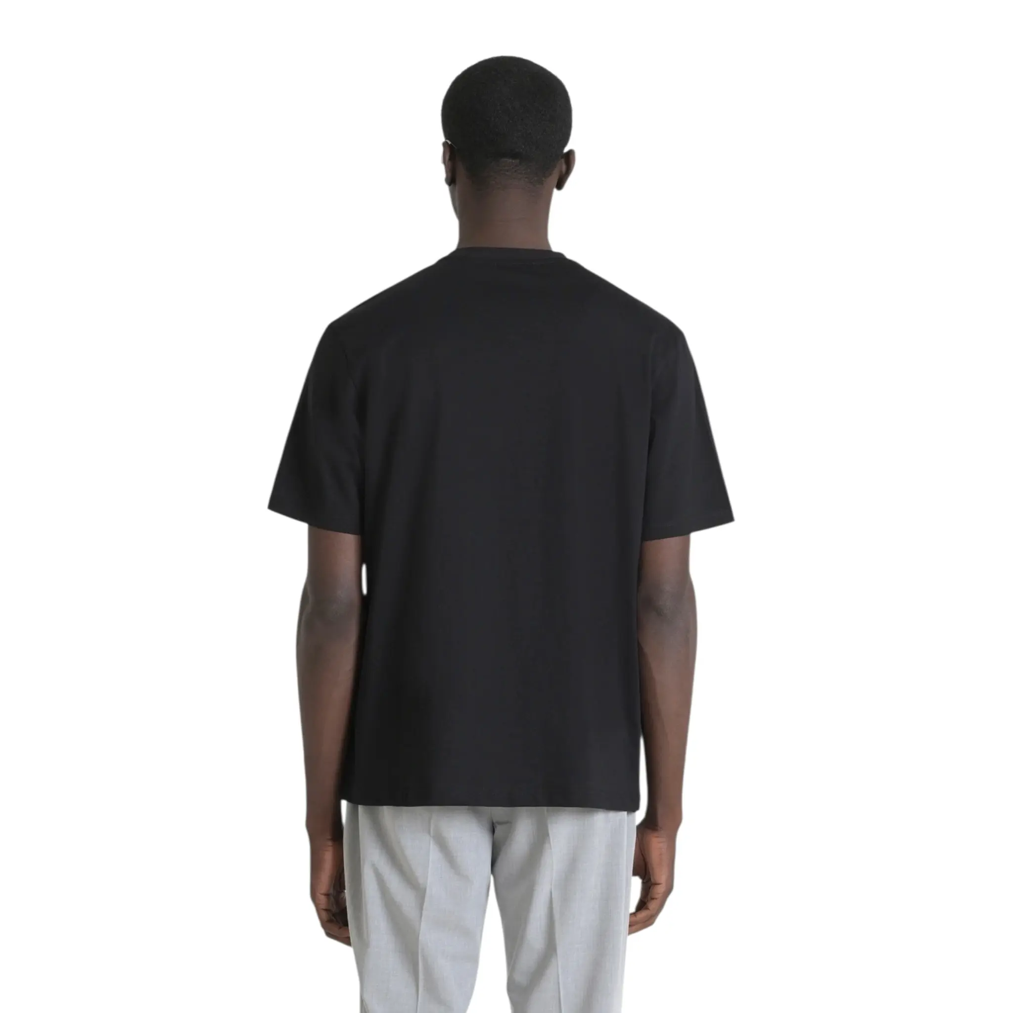 La comodidad del tejido de algodón puro se une a las líneas sencillas y esenciales de esta camiseta, que no podrá faltar en el armario masculino. Antony Morato firma una camiseta con un ajuste relajado y un pequeño monograma de goma en el lado del corazón