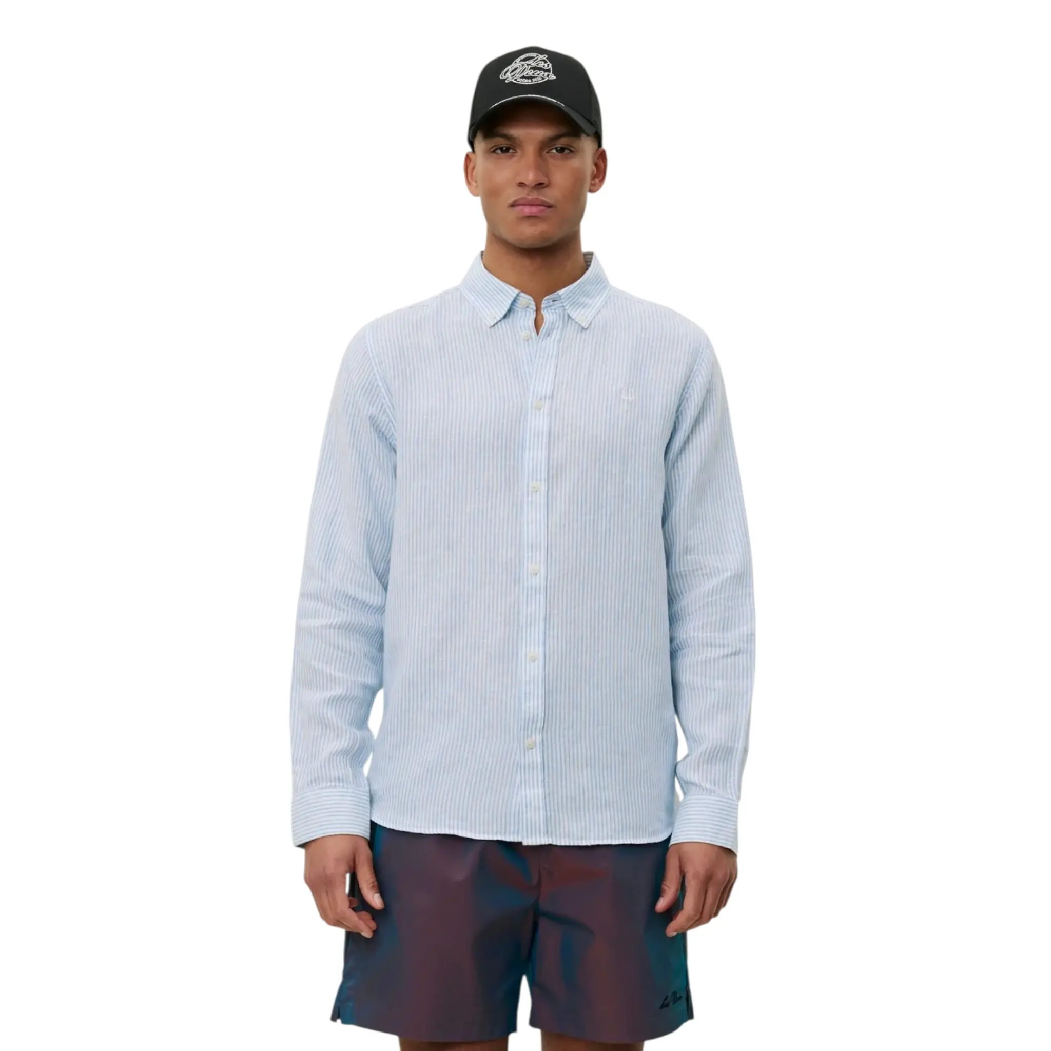 One of our hero pieces, the Konrad Shirt, remade in linen with a classic stripe pattern. It comes with a curved back hem, button-down collar, and embroidered Encore on the chest. A wardrobe workhorse for warmer months.