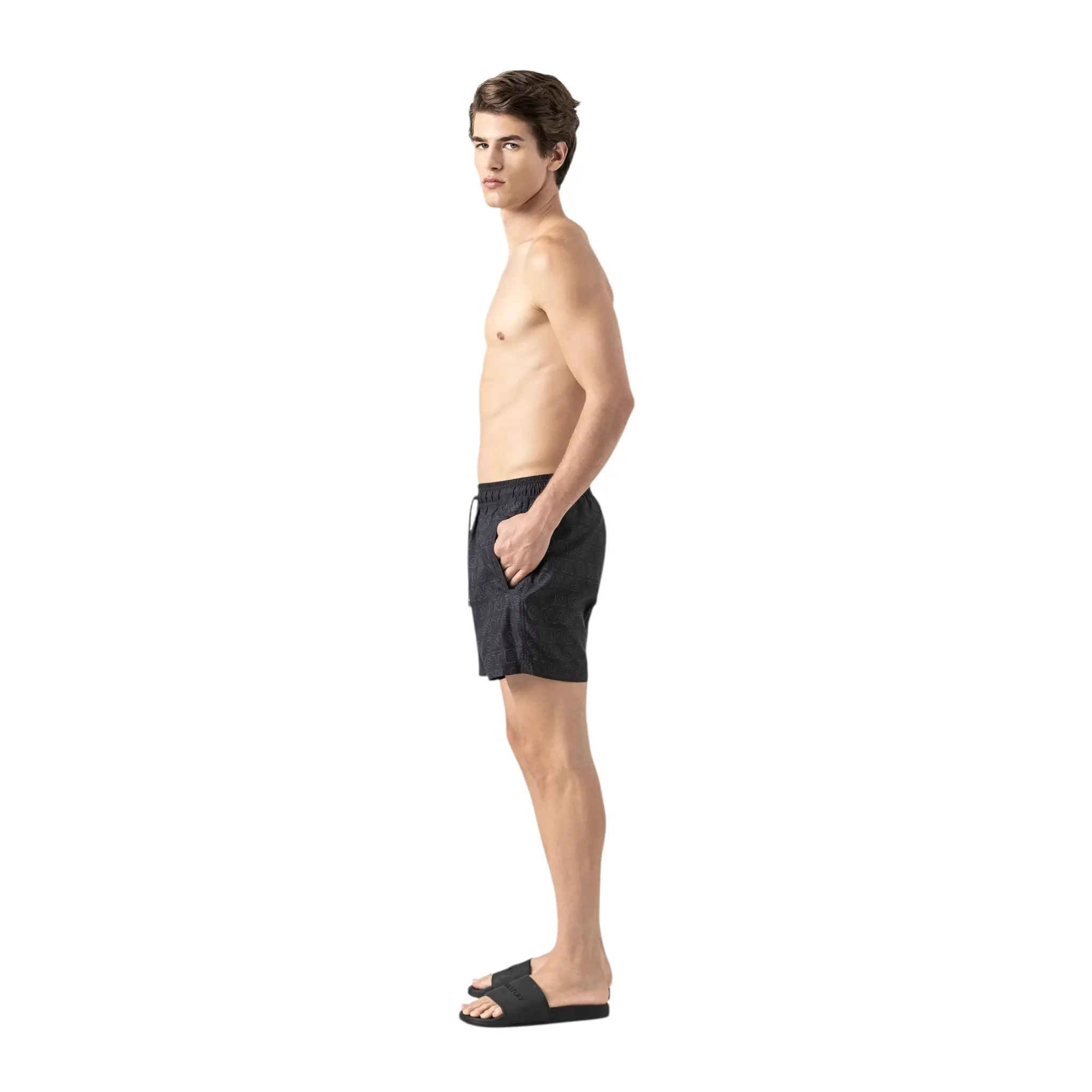 Baham 1 men’s swim shorts. With a short silhouette that highlights a cool and confident attitude, these swim shorts are made of fluid-resistant fabric for maximum comfort and quick drying. They feature an internal mesh jockstrap and subtle front and back ties that precisely highlight the logo detail. The flat print on the back adds a graphic identity, while functional pockets complete a design designed to accompany you in style to every destination. Essential for a vacation full of character and sophistication.
