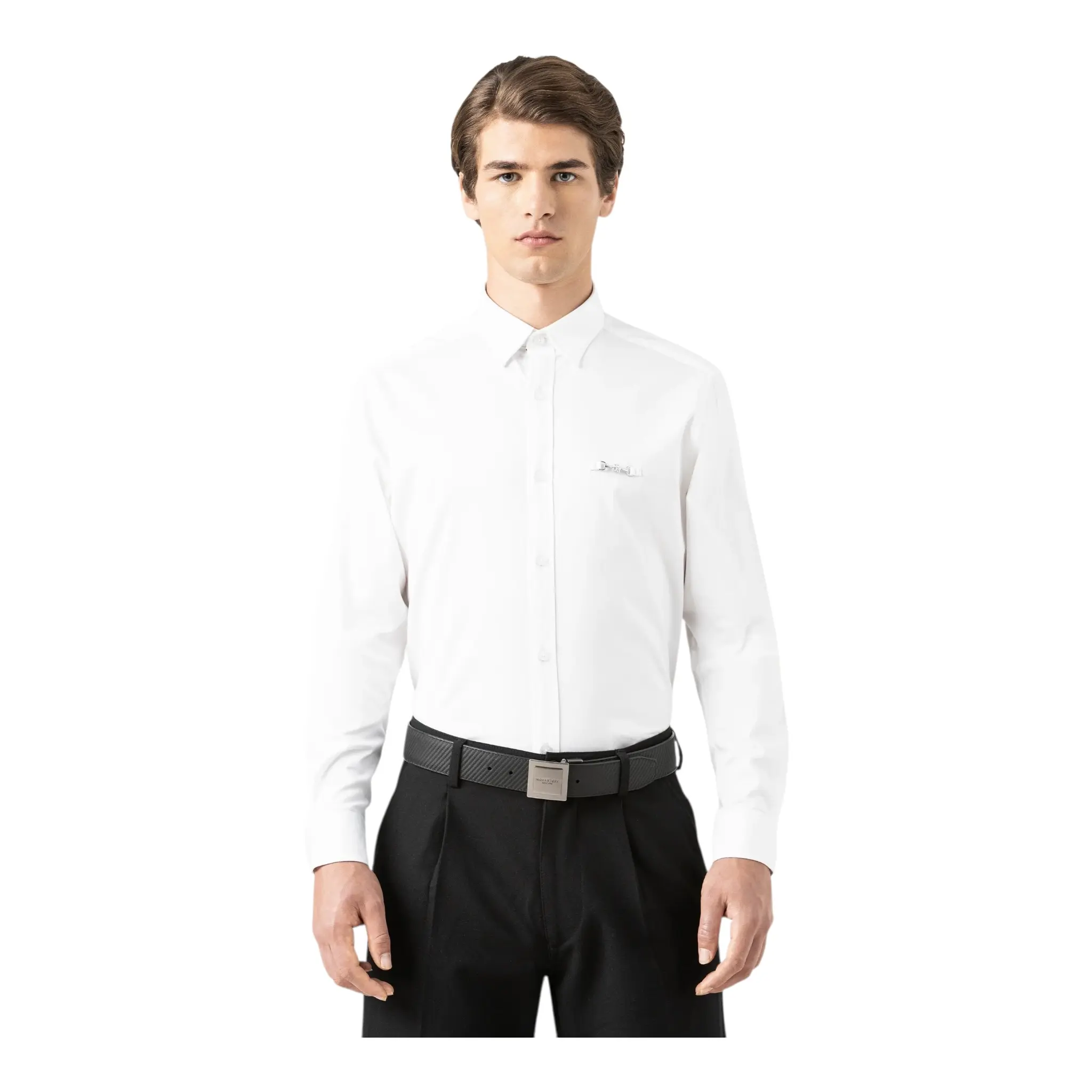 The Zar Shirt is distinguished by its refined design and beneficial finishes. Made from cotton with elastane, it offers a regular silhouette that balances comfort and style, accompanied by a soft and lightweight feel. A high-quality metallic appliqué on the front adds a modern accent, while the high-density print on the back reinforces its visual appeal. The signature logo embroidered inside the knob and the contrasting buttons enhance the tailoring details, reaffirming the garment’s premium essence. Versatile and distinctive, it adapts to both a formal style and a casual look with personality.