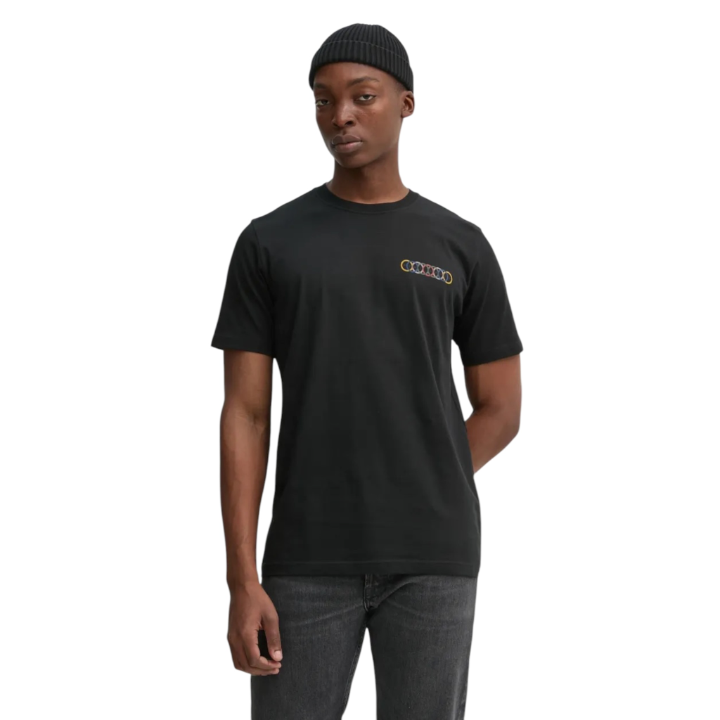 Made from 100% organically grown cotton, this white and black T-shirt features a multicolour overlapping circles print on the front. Cut for a regular-fit, this T-shirt is finished with a ribbed collar.